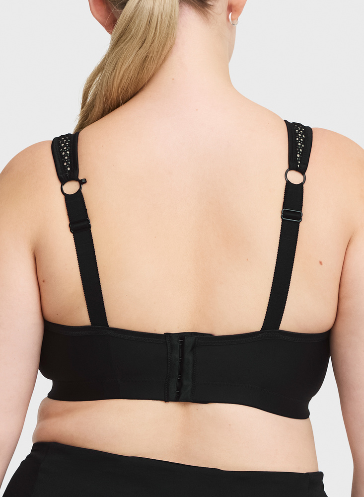 Padded hook & eye closure that is gentle on the skin and varies in height depending on the size. 3 rows in sizes 75-85 BCD. 4 rows in sizes 90-95 BCD, 75-95 EF.